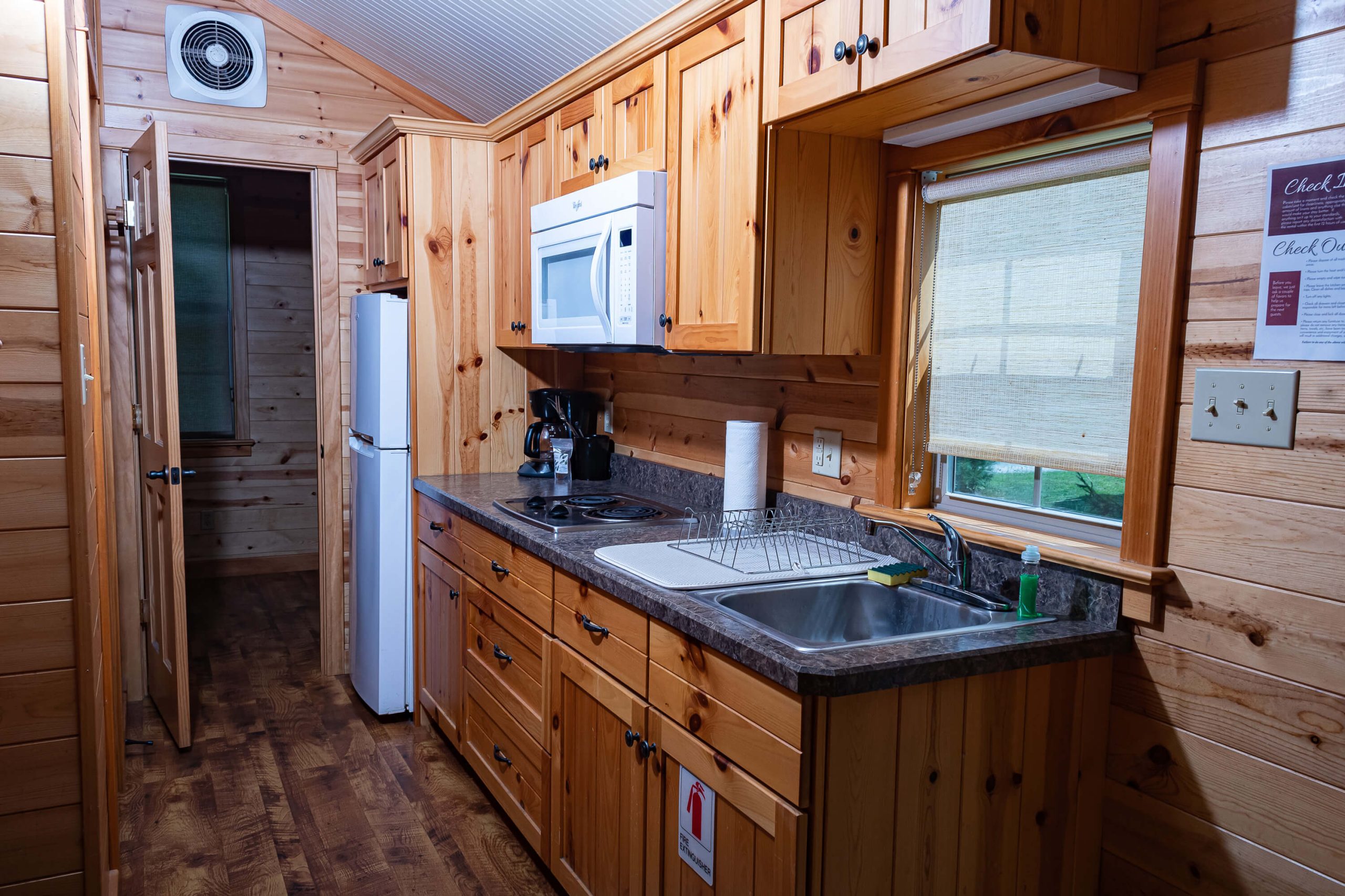 New for 2021 the Rusty Spinner was designed with a floor plan that works best for a family that is looking for all the modern conveniences of home while enjoying the great outdoors. This cabin has 2 bedrooms at opposite ends. The master has a queen sized bed and flat screen tv. The second bedroom has a twin over full set of bunk beds. The Kitchen is fully equipped to prepare all your favorite camping meals. The bathroom has a walk in shower and a modern flush toilet. This will be a family favorite for years to come !